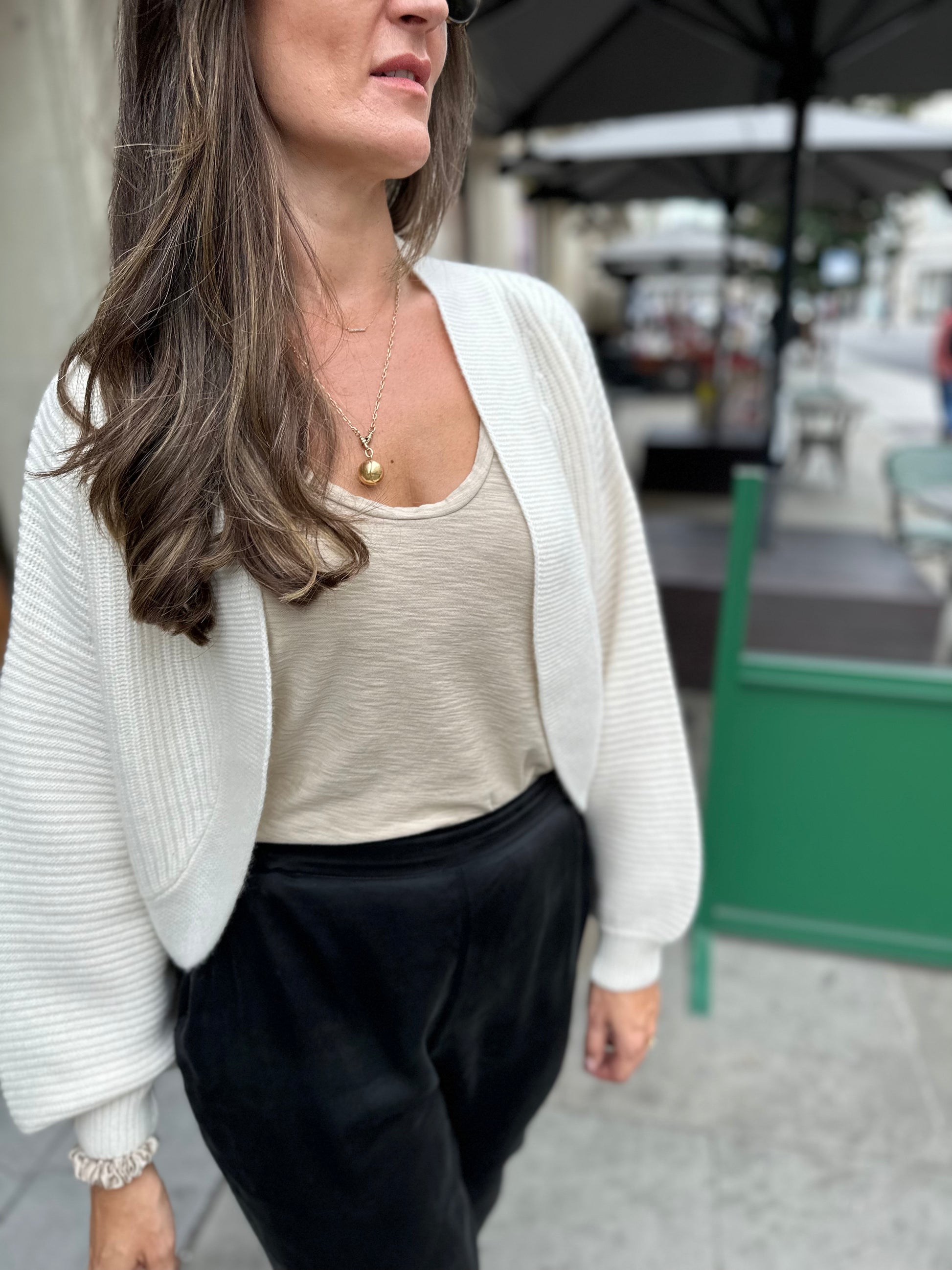 Our newest addition. A beautifully soft and light cropped cardigan made from 100% Grade A cashmere in Cloud.